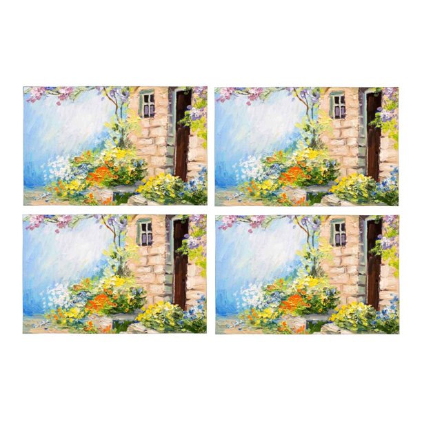 Home Garden Cotton Floral Brush Stroke Table Mats Placemats