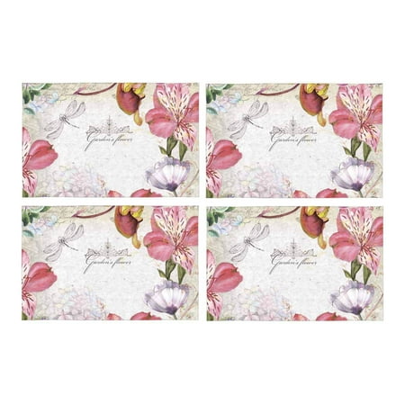 Mkhert Vintage Dragonfly In Floral Spring Garden Placemats Table