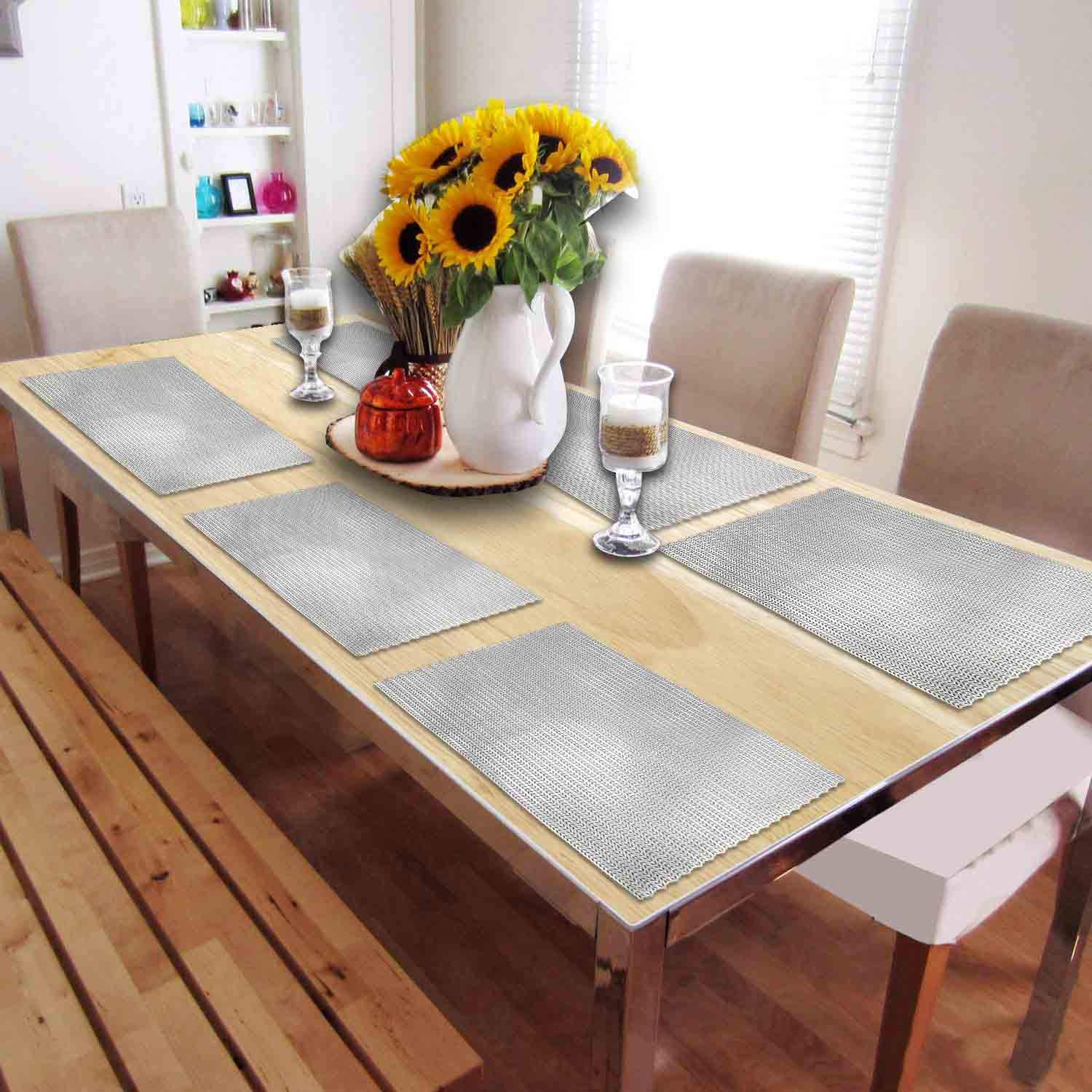 Our placemats table runners napkin rings coasters and assorted pieces of decor will help stage a vibrant tablescapego natural and try a woven stick placemat then complete the look with a tropical flower centerpiece. Syntus placemats silver grey pvc woven vinyl table mats washable non slip heat resistant for kitchen dinning table thanksgiving christmas set of 4. Eligible for free uk delivery.