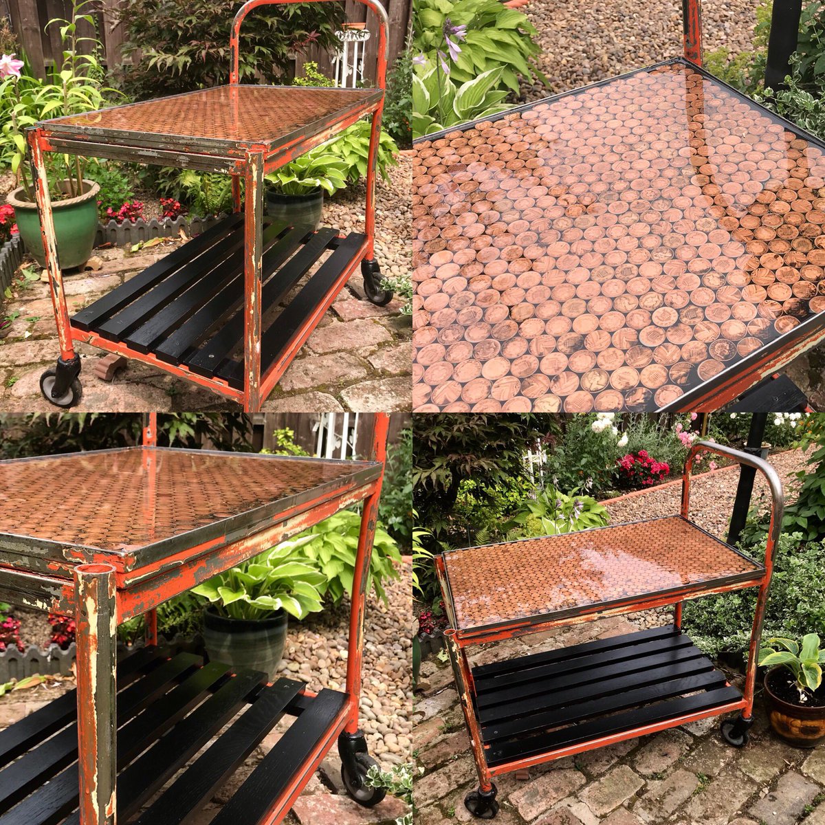 Often the blanks have natural edges the containing resin epoxy between looks like a flowing river. I sourced a table from well known furniture company and bought some bottle caps from ebay.
