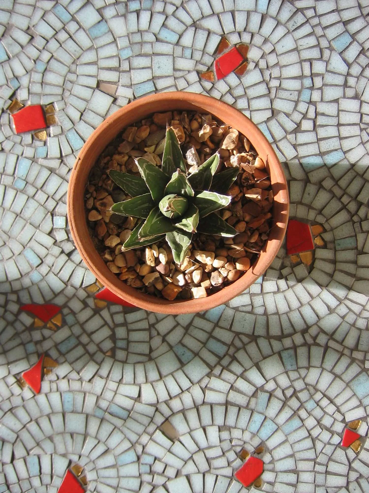 Beautiful colors and interesting patterns are suitable for every detail of the garden such as planters pathways benches and much more. You can make a mosaic table top for most garden tables.
