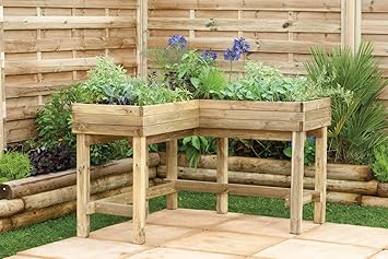 Stylish Corner Wooden Table Planter For Herbs Plants And
