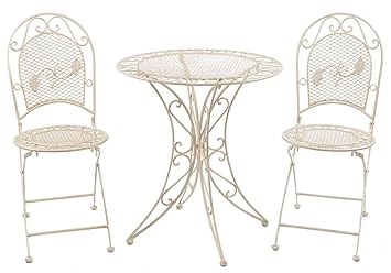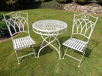 Metal garden bistro set patio furniture outdoor 3 piece table chairs vintage. Along with the lovely metal round table it will create a good conversational or meeting point. Rustic french white vintage metal iron folding bistro garden patio table.