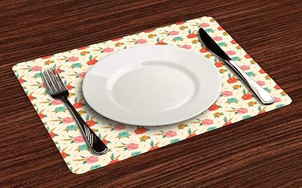 Amazon Com Lunarable Floral Place Mats Set Of 4 Romantic