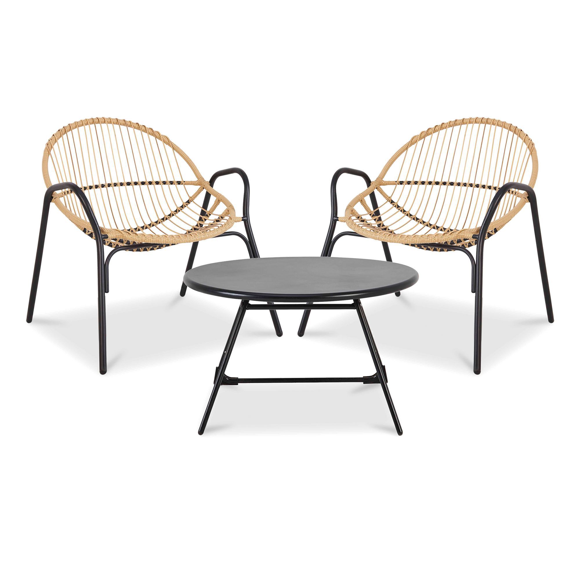Faux rattan lounge furniture set ideal for a conservatory and as a patio garden set includes two very well made foldaway chairs and round table with glass top. For more garden furniture inspiration take a. Choose from a selection of bistro tables and large dining sets to sunloungers.