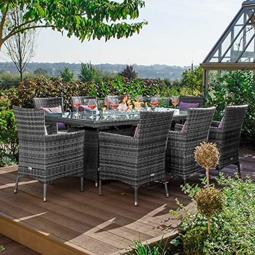 Maze Rattan Ibiza 8 Seater Fabric Garden Dining Set With Fire Pit