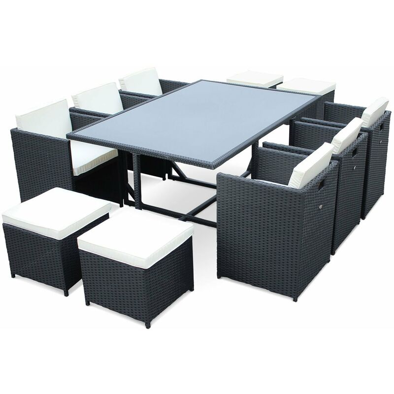Vasto 10 10 Seater Garden Table And Chair Set Black Off White
