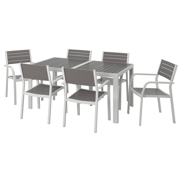 Sjalland Dark Grey Light Grey Table 6 Chairs W Armrests Outdoor