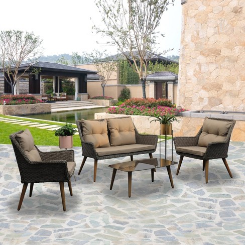 4pc Wicker Patio Seating Set With Cushions Khaki Nuu Garden Target