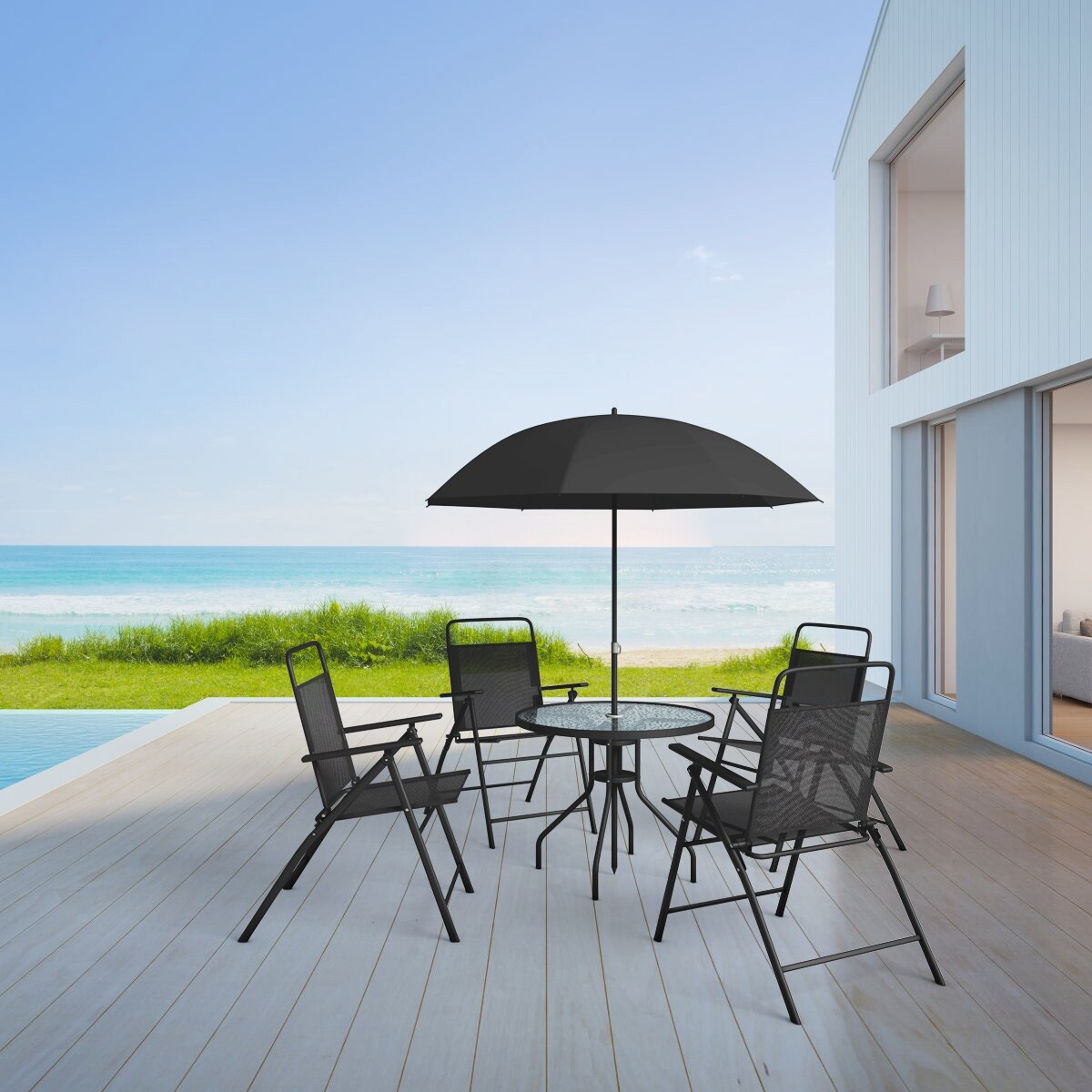 6 Piece Patio Dining Set Folding Table Chairs Umbrella Outdoor