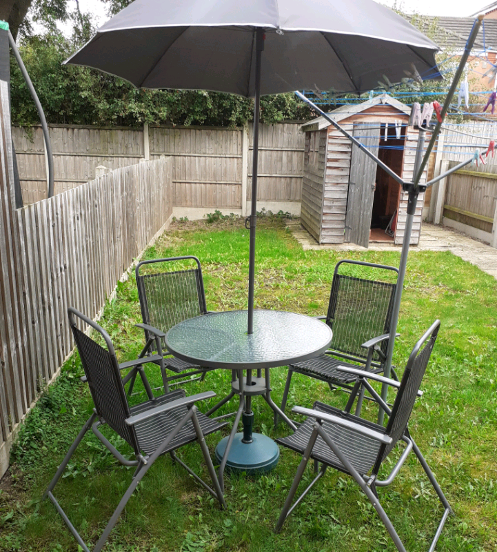 Spruce up your outdoor area with a garden table and chairs. Buy garden table umbrella and get the best deals at the lowest prices on ebay. I was very happy with the quality and comfort of this table and chairs it looks great on my small patio and the chairs are really light and easy to move you even get the umbrella stand and a cover to put over for the winter which is really good for the price.
